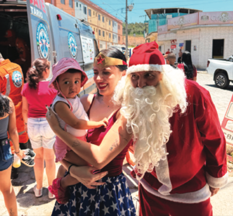 A jovem estudante Maria Luiza de Assis Nunes participa da ação e descreve a emoção de viver a entrega. “A parte mais gratificante é ver a gratidão das crianças e das famílias. Todo ano, vou fantasiada, e as crianças ficam muito animadas. Eles recebem a gente de forma muito acolhedora, com o mesmo carinho que chegamos lá para entregar os presentes”, conta.
