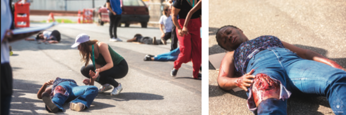 Mais de mil pessoas participaram da atividade, cerca de 400 delas atuando diretamente na cena. Estudantes dos cursos de Medicina, Enfermagem, Biomedicina, Psicologia, Jornalismo, Engenharias e Tecnologia em Manutenção de Aeronaves tiveram papel central no exercício, seja no atendimento às vítimas, sob supervisão de professores e profissionais especializados, seja na caracterização, na simulação de familiares ou como observadores. Residentes da Fundação Hospitalar do Estado de Minas Gerais (Fhemig) atuaram como “sombras”, responsáveis por informar os sinais vitais das vítimas.